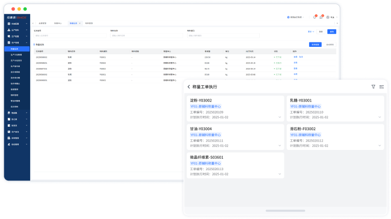- 根据生产BOM自动推荐原料和辅料配料批次